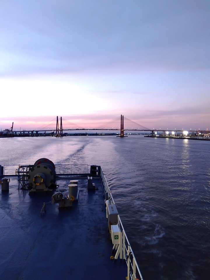 19時にフェリーが出航しました。仙台港に到着するのは翌日の17時頃。